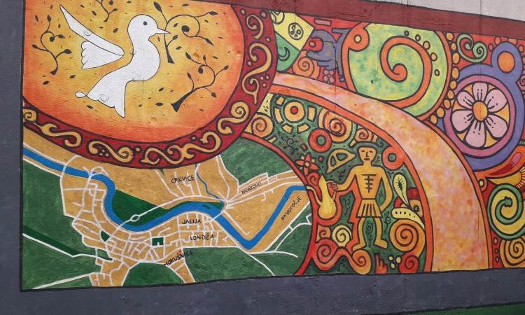 Mural je djelo umjetnika Kemala Krkalića, a kako su istakli iz koalicije “Positive Tolerance”, odslikava kulturno-historijsko naslijeđe naše zemlje te opredjeljenost građana tog grada za mir kroz vijekove.