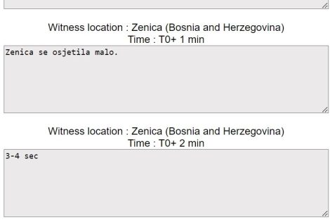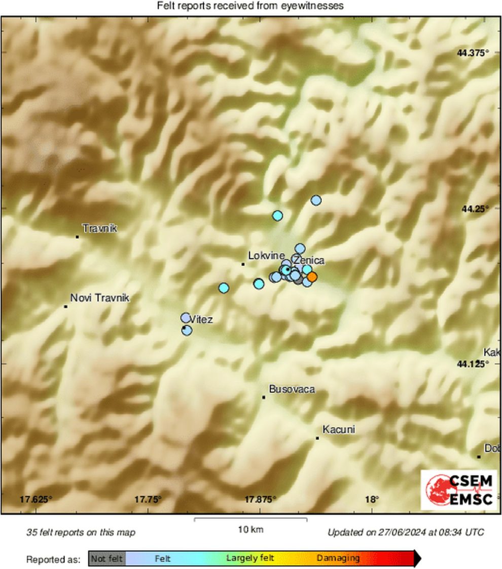 Iako je u prvih pet minuta na stranici Mediteranskog seizmološkog instituta EMSC zabilježeno desetak svjedočenja sa više lokacija u i oko Zenice, još uvvijek nema podataka o epicentru i jačini potresa koji se u 10.31 osjetio u Zenici.