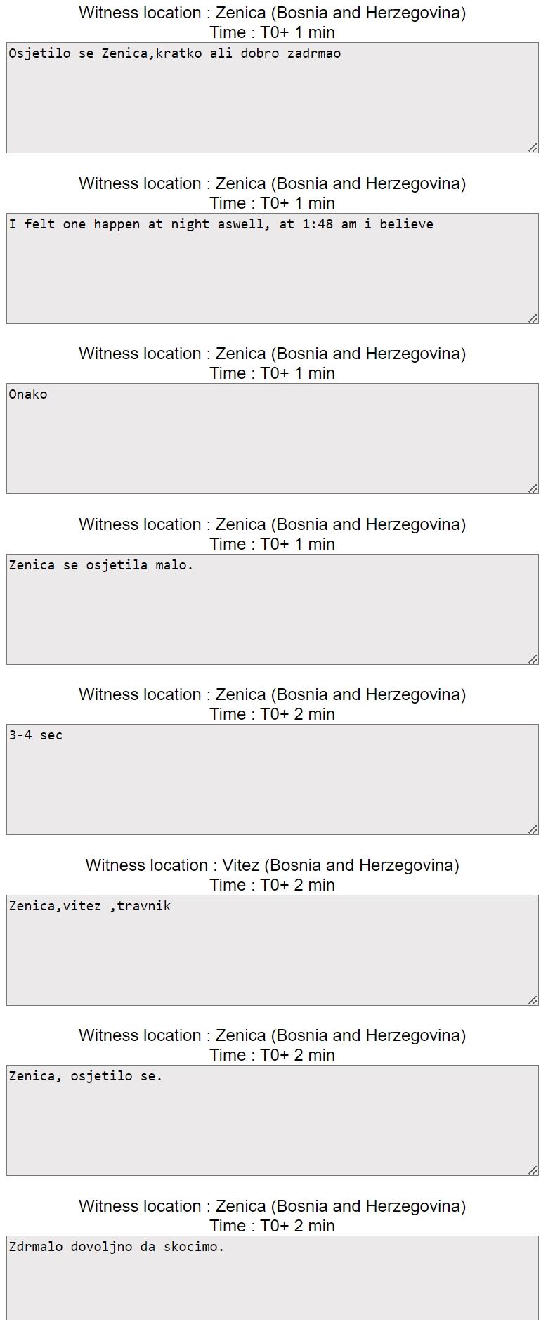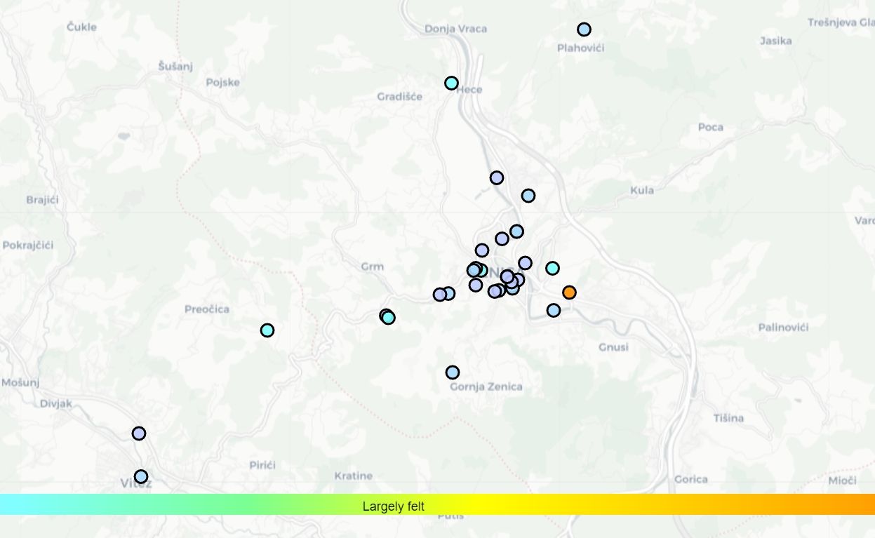 Iako je u prvih pet minuta na stranici Mediteranskog seizmološkog instituta EMSC zabilježeno desetak svjedočenja sa više lokacija u i oko Zenice, još uvvijek nema podataka o epicentru i jačini potresa koji se u 10.31 osjetio u Zenici.