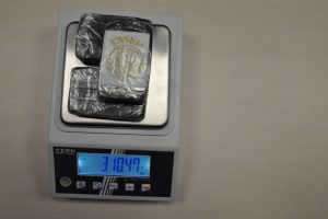 – smeđe tvrdu materiju bruto težine 310,47 grama