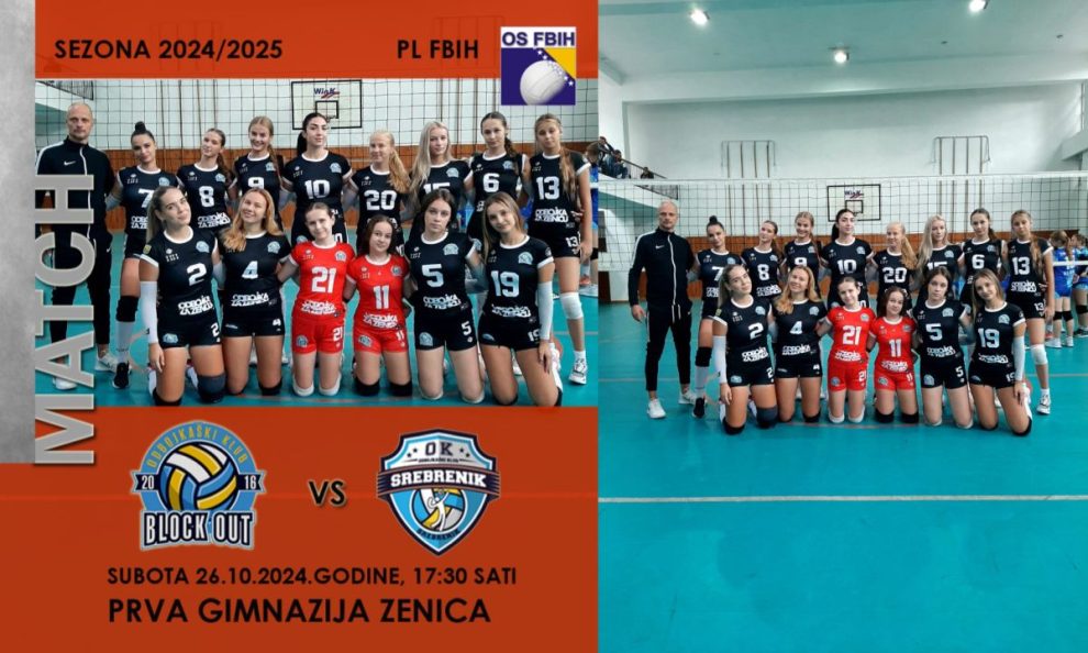 Utakmica OK “BLOCK OUT” vs OK “SREBRENIK” igra se ove subote, 26.10.2024. u Prvoj Gimnaziji Zenica sa početkom u 17:30 sati.