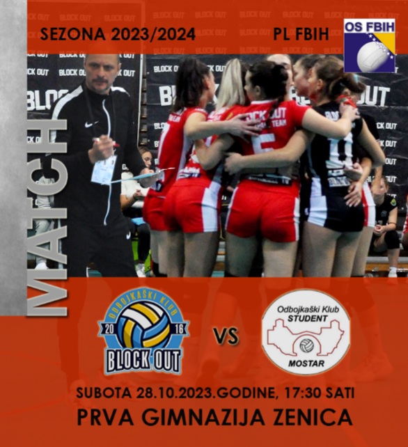 Utakmica OK “BLOCK OUT” Zenica vs OK “STUDENT” Mostar igra se ove subote, 28.10.2023. u Prvoj Gimnaziji Zenica sa početkom u 17:30 sati.