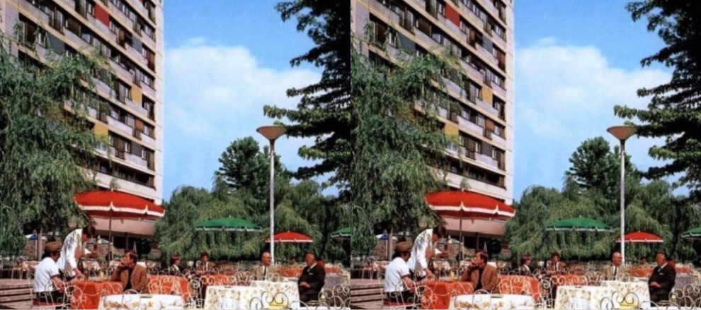 Slika sve govori, blago predvečerje , bašta čeka svoje goste. Vrijeme, ljeto 77′, raja se sprema za izlazak. Uživo je muzika svaki dan, osim ponedjeljka, ali i tada je bašta puna. Ko ostane do fajronta, ima bar u suterenu, pa neka izvoli…