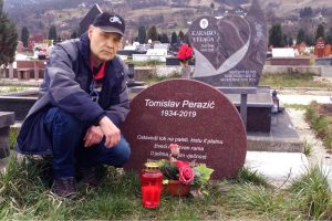I desi se ono neminovno, Tomo nas zauvijek napusti, ali iza njega ostade mnogo prijatelja koja ga ne zaboravi. Sama od sebe, kao dug prema jednom dobrom čovjeku, velikom umjetniku, rodi se ideja da se digne jedan dostojan spomenik čovjeku koji je dosta dao Zenici. Milenko Šećerović, njegov veliki prijatelj, umjetnik, učenik Tomin, dođe na tu ideju. Gospođa Kristina Knežević ustupi crveni mermer koji je ostao od oca joj, poznatog Zeničkog kamenoresca iz Raspotočja Marka Kneževića, a Hilmo Kakrić sve to fino obradi i ispisa na crvenom mermeru epitaf koji sroči Zenički pjesnik Emir Sokolović. I tako, dadoše svoj doprinos da se mjesto gdje počiva Zeničanin Tomislav Perazić trajno obilježi…
