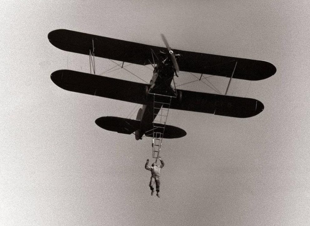 Mnogi od nas su tada prvi put i vidjeli avion uživo, još sa kojega visi atleta, kažu najjači čovjek tog vremena, a pri tome i najhrabriji.
