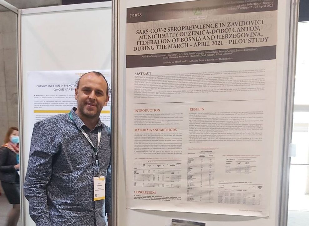 Institut za zdravlje i sigurnost hrane Zenica (INZ) s ponosom objavljuje da su njegovi zaposlenici i stručnjaci protekle sedmice učestvovali sa dva stručna rada na 32. Europskom kongresu kliničke mikrobiologije i zaraznih bolesti (32nd European Congress of Clinical Microbiology and Infectious Diseases). Kongres je, nakon dvije “pandemijske” godine, održan protekle sedmice u Lisabonu (Portugal), i to u “hibridnom” formatu, odnosno uz prezentacije uživo, prezentacije putem postera-plakat prezentacija, kao i online.