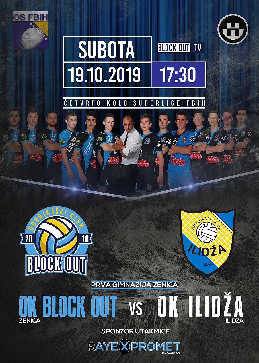 Utakmica OK “BLOCK OUT” Zenica – OK “ILIDŽA” Ilidža igra se u subotu, 19.10.2019. u Prvoj Gimnaziji Zenica sa početkom u 17:30 sati.