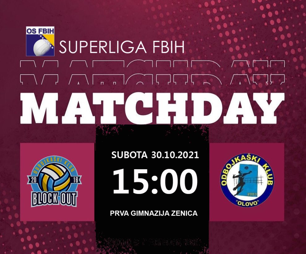 Utakmica OK “BLOCK OUT” Zenica vs OK “OLOVO” Olovo igra se u subotu, 30.10.2021. u Prvoj Gimnaziji Zenica sa početkom u 15:00 sati.