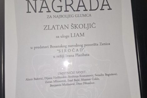 Glumac BNP Zenica Zlatan Školjić dobitnik je Nagrade za najboljeg glumca na 11. festivalu glumca BiH u Konjicu za ulogu Liama u predstavi “Siročad”, prema tekstu Denissa Kellyja, u režiji Ivana Plazibata i u produkciji Bosanskog narodnog pozorišta Zenica.
