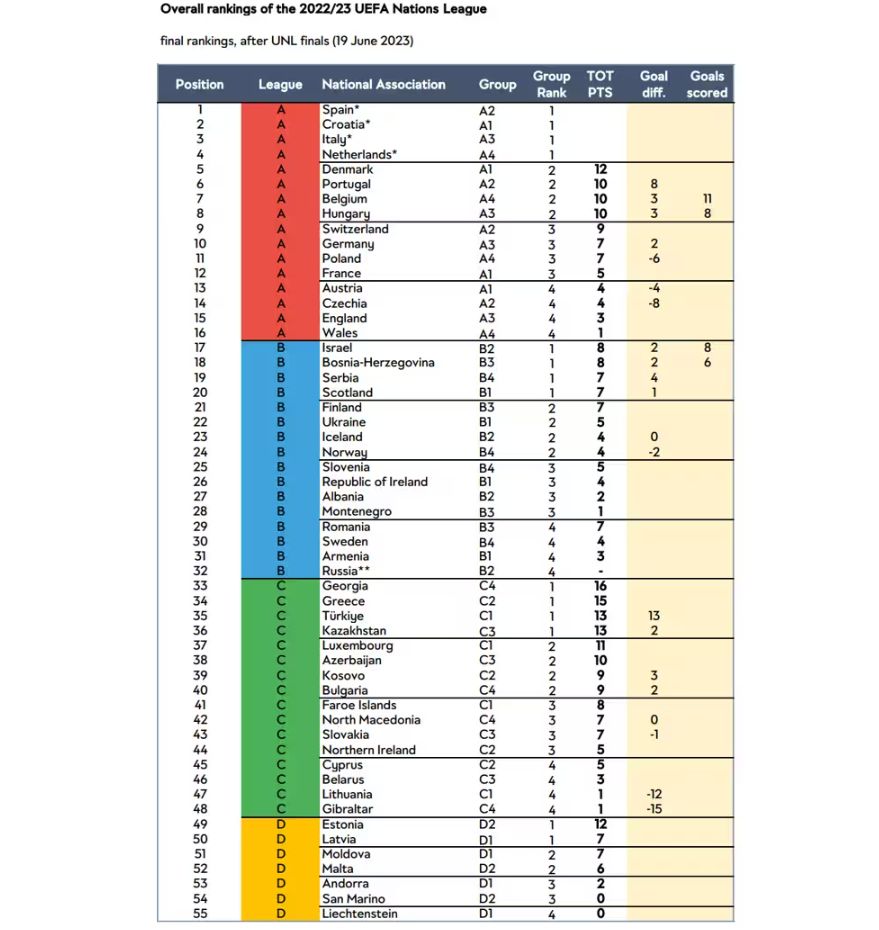 Ono što je bito napomenuti naša reprezentacija kao pobjednik grupe ne može biti prebačena u baraž Lige nacija A. Osim Zmajeva pobjednici grupa Lige nacija B su i Izrael, Srbija i Škotska.