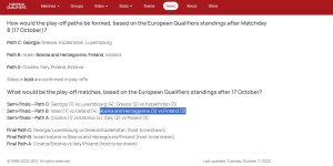 Međutim, kako je izvjesno da će Srbija i Škotska izboriti plasman na EURO kroz kvalifikacije umjesto njih “uskočit” će sljedeći na rang-listi najbolje plasiranih timova u Ligi nacija, a to su Finska i Island. Do kraja kvalifkacija svoju priliku da zaigraju baraž vrebaju i Norveška, te Republika Irska. Također, postoji šansa da Italija u kvalifikacijama prestigne Ukrajinu, što znači da bi i Ukrajinci bili potencijalni protivnik bh. timu u play-offu za plasman na EURO.