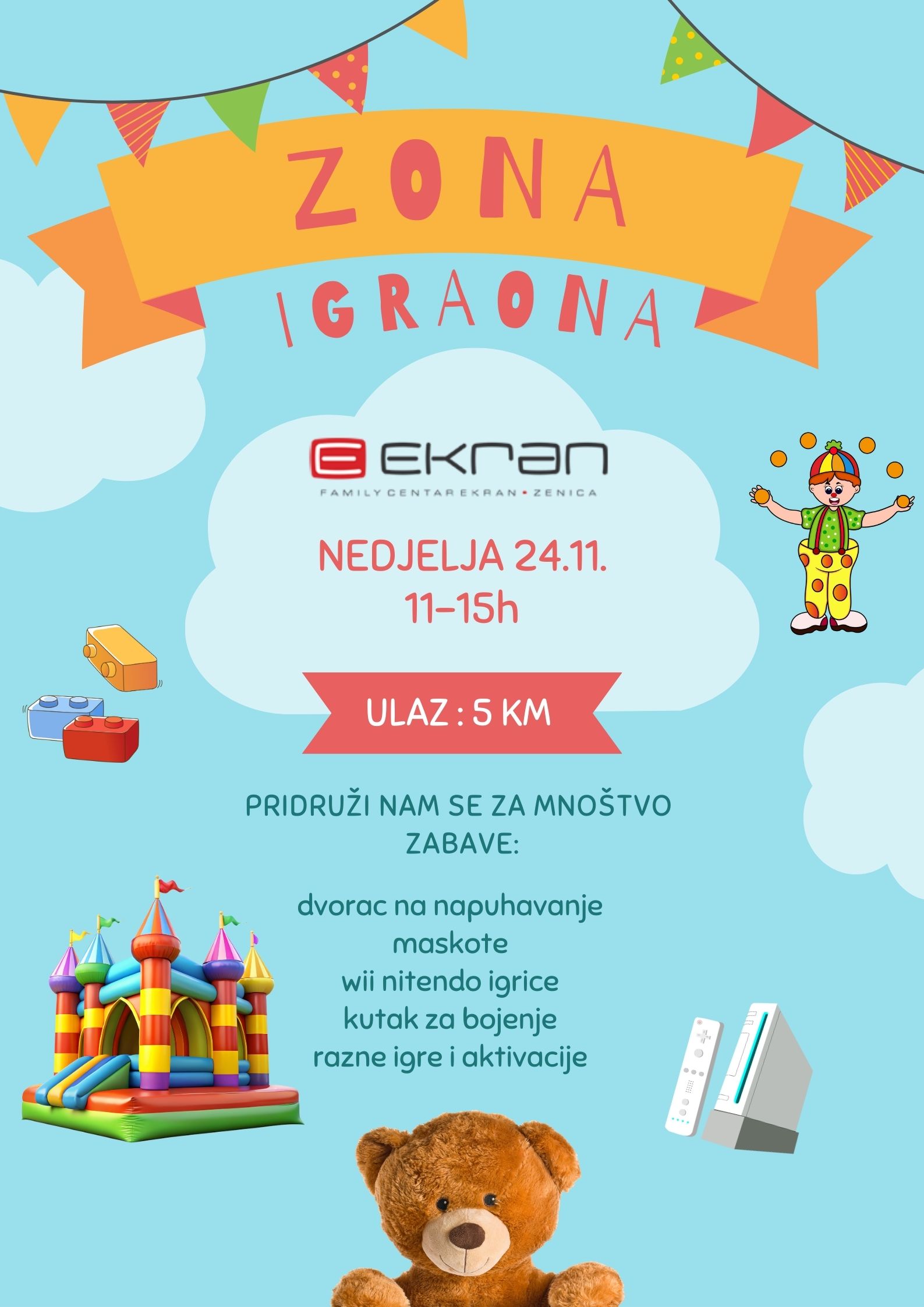 Dođite u nedjelju od 11h u Family centar Ekran i uživajte u našoj ZONI IGRAONI!